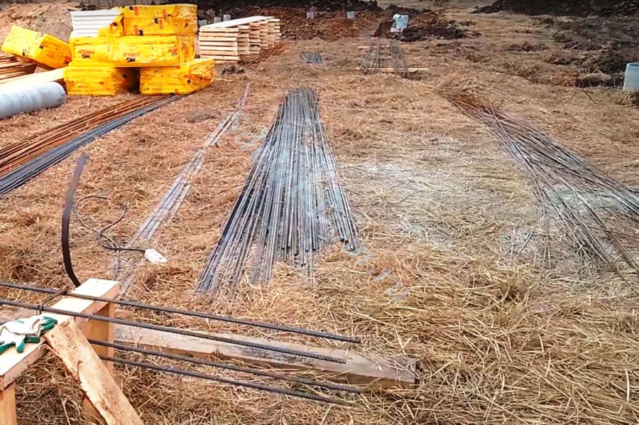 Для ускорения процесса лучше всего самостоятельно подготовить опалубку, разместить арматуру, проложить трубы для подведения коммуникаций в дом.