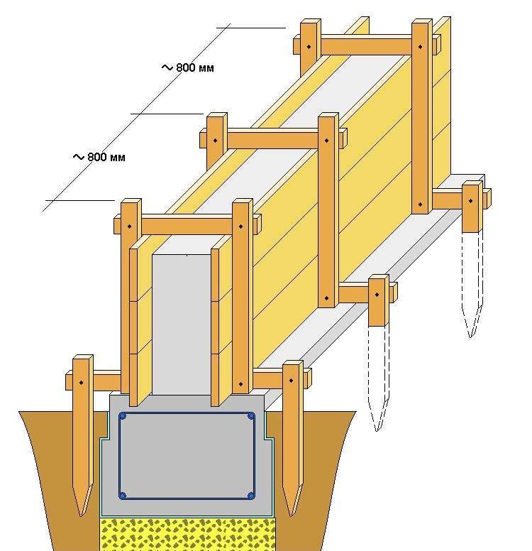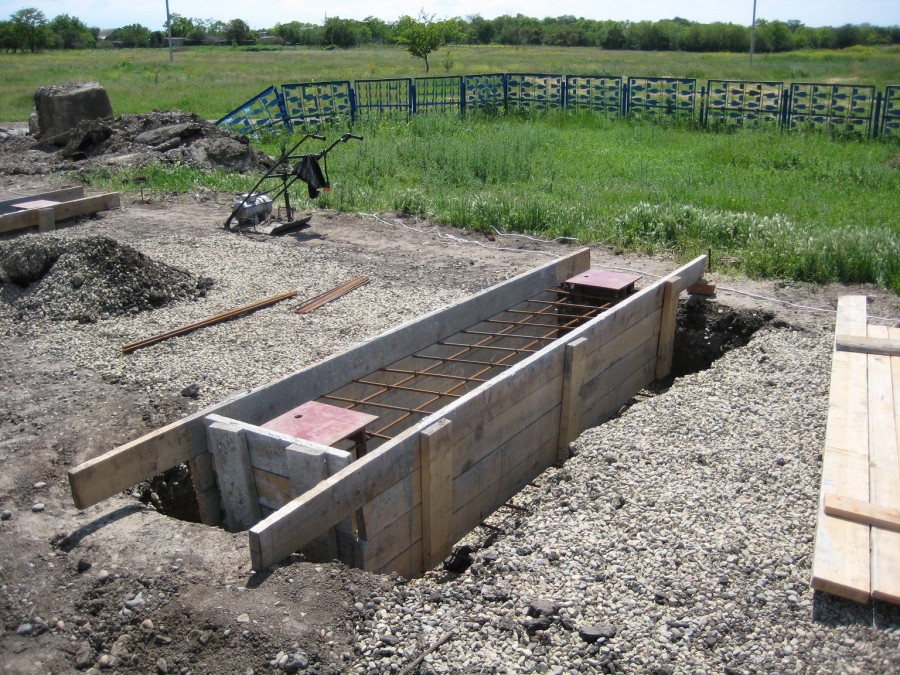 Делая опалубку некоторые сначала заливают раствор до уровня земли, затем делают опалубку. Кто-то делает ее сразу, не принципиально, если заливаете фундамент своими руками, меньше придется наматывать кругов вокруг опалубки.