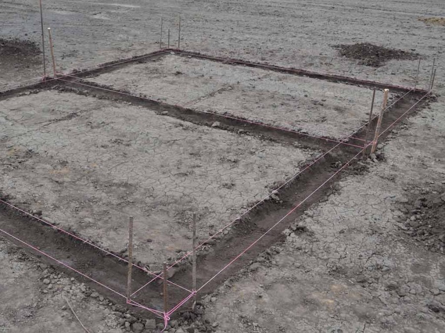 - Снимите верхний слой грунта, чтобы ничего не мешало разметке траншей под фундамент.
