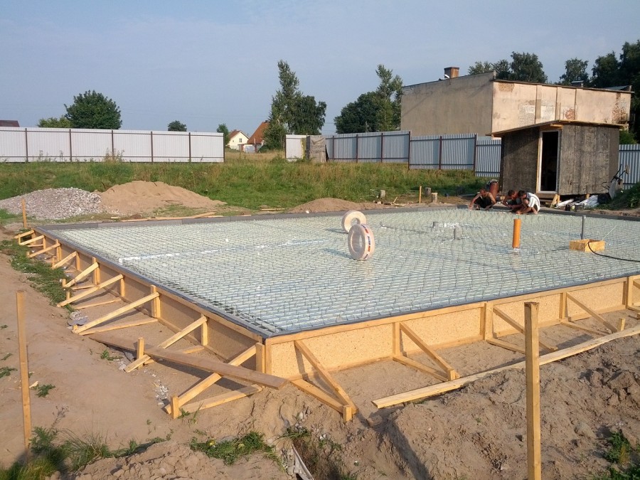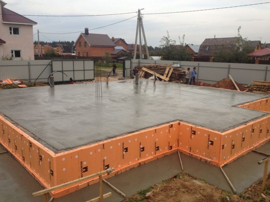 А вот если вам нужен очень прочный и долговечный фундамент – то плавающий тип вам полностью подходит. Такой фундамент – цельная бетонная плита, ее размеры – размеры будущего дома.
