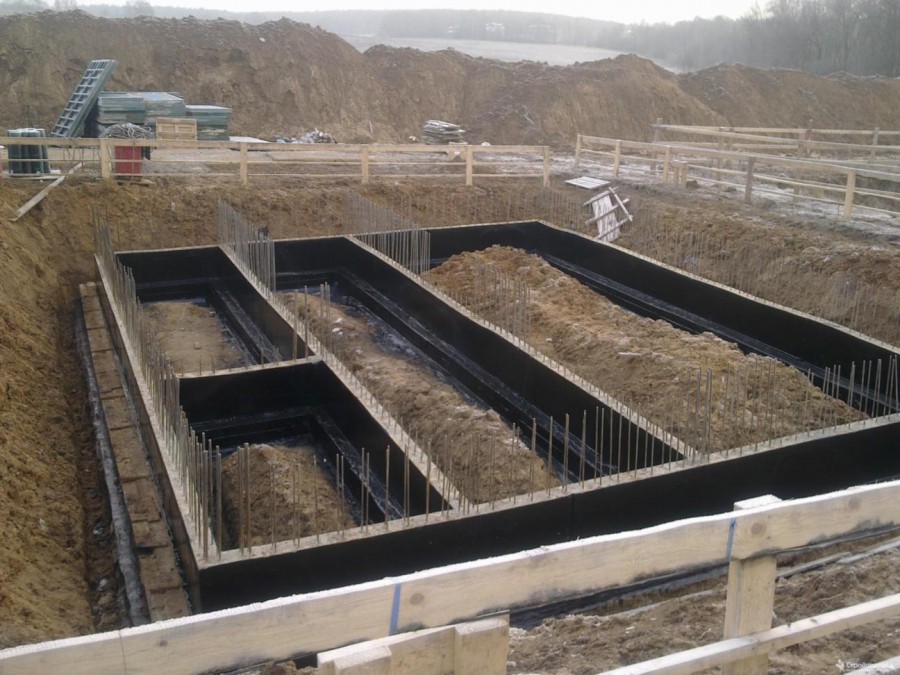 - Гидроизоляция необходима для тех участков фундамента, которые находятся ниже уровня земли.