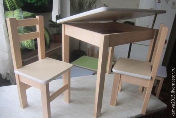 Стол и стульчик лучше делать из дерева бук. Он легок в обработке и не выделяет смолу. Но как бюджетный вариант вполне подойдет сосна или береза, только их необходимо обессмолить, так как смола небезопасна для ребенка, да и одежду может испортить.