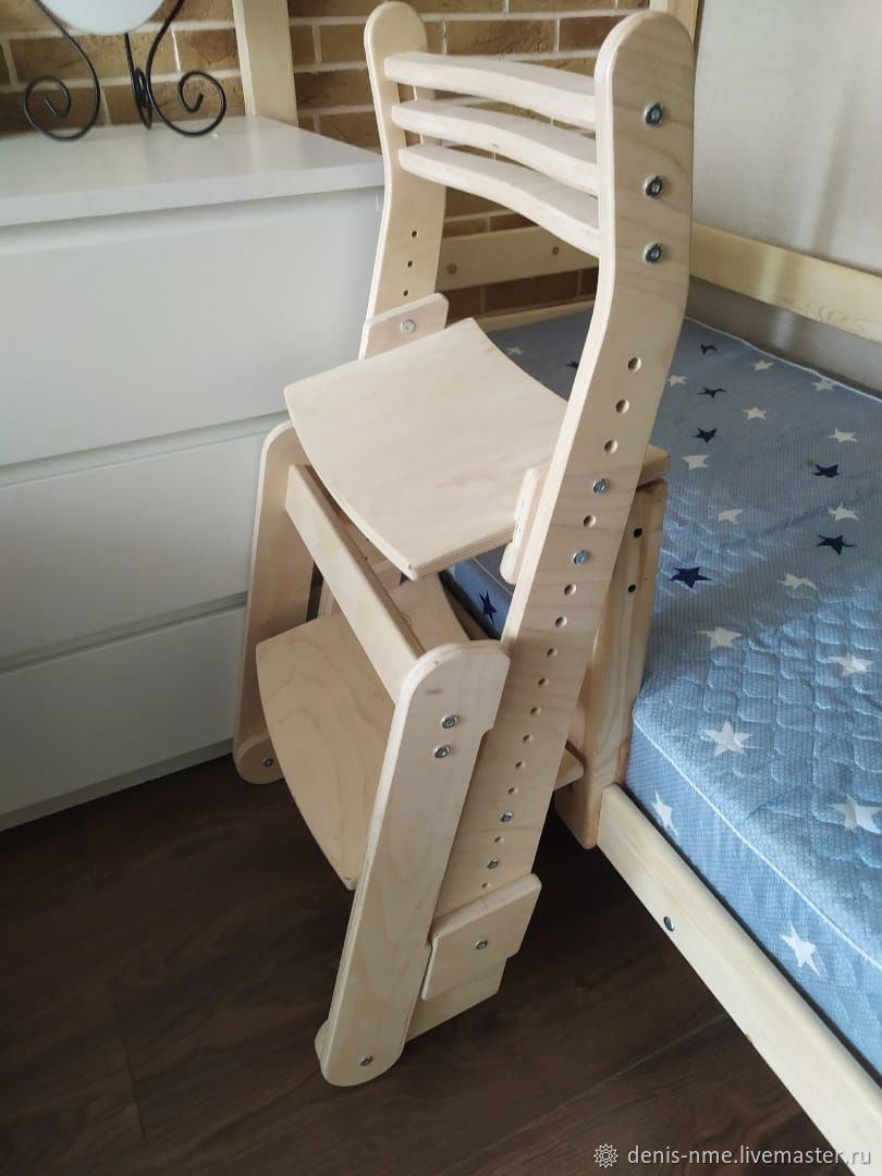 Когда детский деревянный стул трансформер готов, его покрывают несколькими слоями лака.