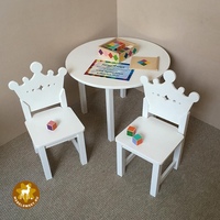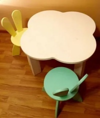 Следуйте инструкциям и соберите этот детский набор из стола и стульев с забавными вырезами.