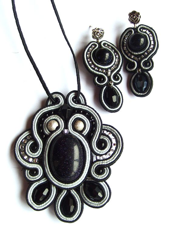 Кулон в технике сутажной вышивки