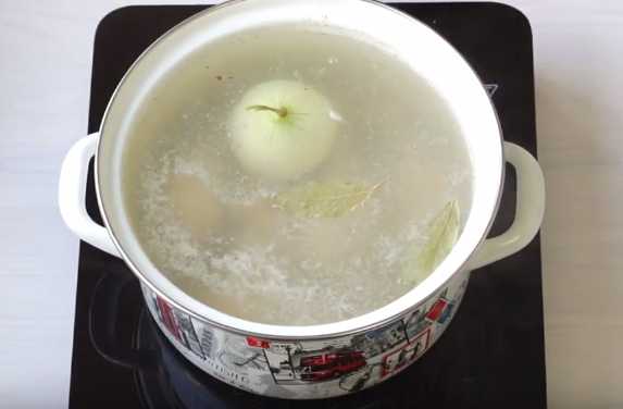 Овощи чистим, картофель режем кубиком и сразу ставим вариться. Добавляем соль и перец после того, как перестанет подниматься пенка. Пенку нужно обязательно снимать.