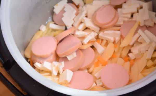 Рецепт 3. Сырный суп из плавленых сырков с копчеными колбасками