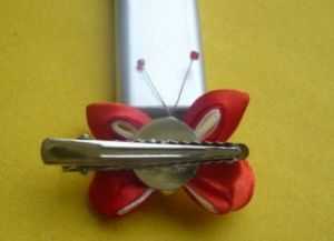Если вы планируете использовать цветок как украшение для волос, например сделать заколки в технике канзаши, вам еще понадобятся прозрачный клей быстрой фиксации (идеальный вариант, клеевой пистолет – быстро сохнет, удобен в работе) и специальное основание для подобных аксессуаров. Теперь можно приступать к работе: