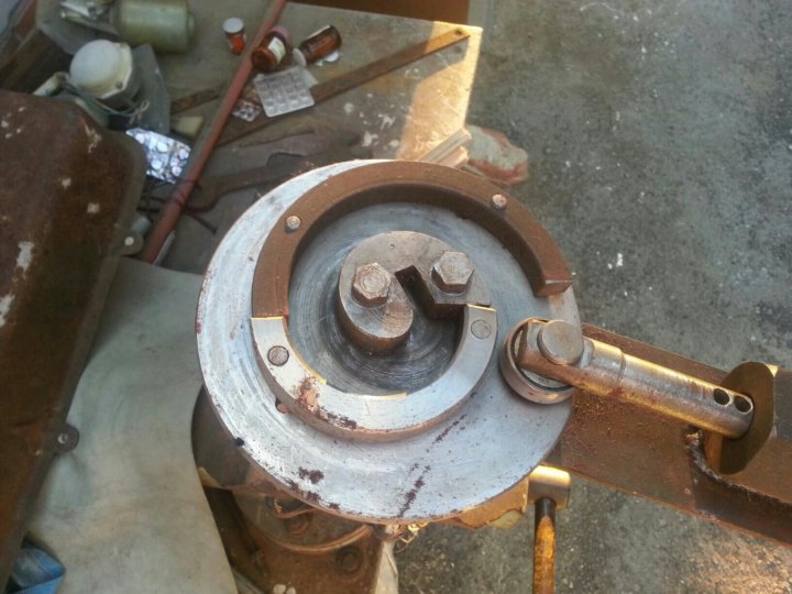 Начал я с подготовки маховика вырезал из листа 8 мм круг равный внутренней части маховика сделал защиту от проворота и нарезал резьбу в маховике дабы сделать кондуктор съемным.