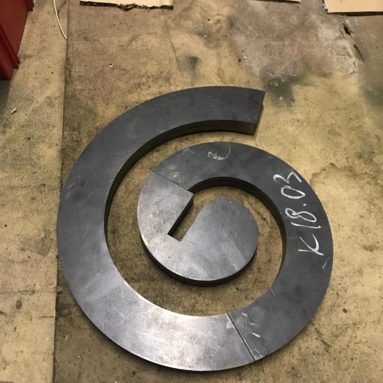 После этого надо найти стальную болванку с нужным диаметром, от которой отрезается фрагмент в 30 см. Из нее будет вырезано начало завитка, центр.