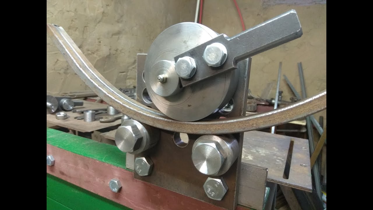 Причем один ролик необходимо устанавливать в неподвижном состоянии. Второй же оснащается рычагом и является подвижным. С его помощью и осуществляется изгиб заготовки, которая закрепляется с помощью неподвижного упора.