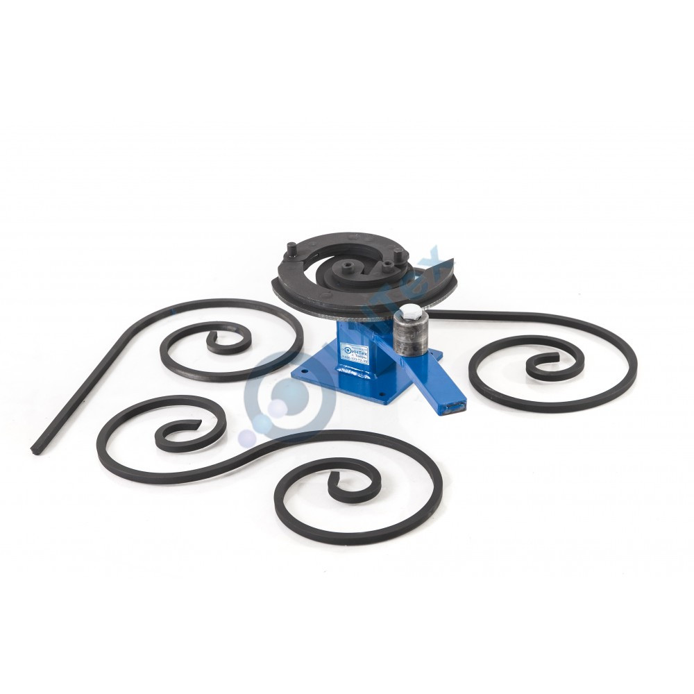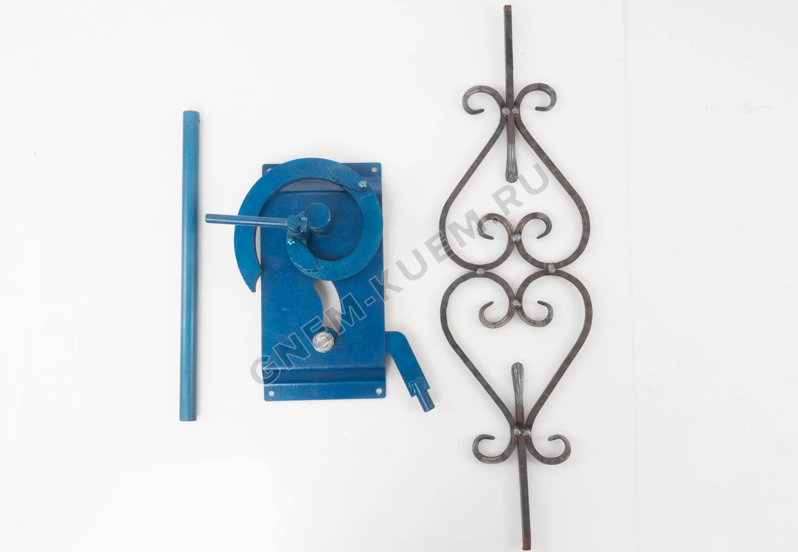 Ручной гибочный станок MZ- V 1 сделает базовые кованые изделия другой конфигурации. В комплект входит подставка для работы с длинными заготовками, прижимные эксцентрики для квадрата и полосы, оправка для изготовления завитков.Цена оборудования от 19 700 руб.