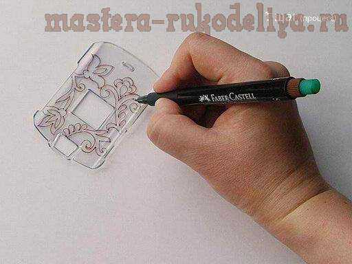 С внутренней стороны чехла наносим маркером рисунок. Т.к. чехол прозрачный, под него можно подложить готовый рисунок и просто его обвести. При нанесении рисунка учти, что область экрана или объектива фотокамеры не должны закрашиваться.