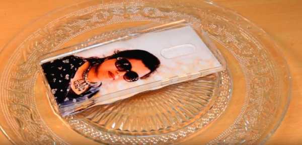 Пришло время снимать подложку. Тут все немного не так как с футболкой и кружкой. Чтобы снять подложку, чехол необходимо замочить в воде комнатной температуры на 30 минут.