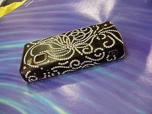 В магазине со швейной фурнитурой приобретите понравившиеся вам стразы и просто приклейте их на ваш телефон с помощью клея типа «Титан». Поверхность телефона предварительно обезжирьте спиртом. Наклеивать стразы вы можете либо в виде какой-нибудь фигуры, либо полностью заполнив стразами заднюю панель. Стразы желательно покупать разных размеров – так ваш узор будет выглядеть более сложным, витиеватым и красивым.