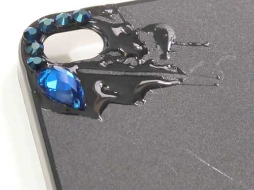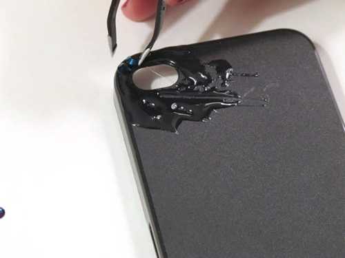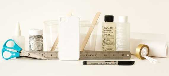 Читайте также: Простые украшения своими руками- Пока украшение чехла сохнет, развести в одноразовом стаканчике эпоксидную смолу с водой (в соотношении 1:1) и аккуратно вылить ее на чехол. Смесь нужно сначала лить на центр аксессуара, а затем с помощью плоской палочки потихоньку размазать ее по всей поверхности чехла.