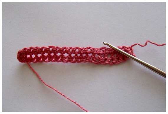 - Для начала померять ширину и толщину телефона. Умножить полученные данные на два и набрать ряд воздушных петель, длина которого равна половине конечного значения. (К примеру, если при умножении толщины на ширину было получено число 13, длина первого рядка будет равной 6,5 см). Обвязать его с двух сторон столбиками без накида. По бокам рекомендовано делать небольшие прибавления в виде 3 ст. б/н., провязанных в одной петле. Таким образом должно получится неглубокое донышко для чехла. Под конец нить закрепить.