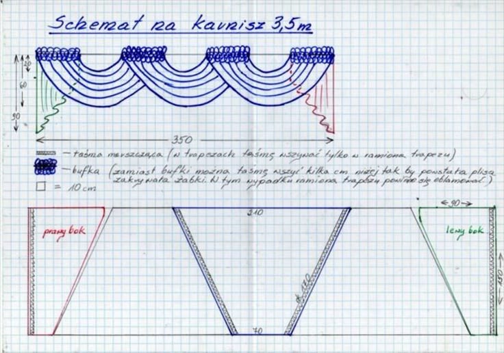 Чтобы сшить кухонную занавеску своими руками, выкройки можно сделать тоже самостоятельно либо поискать в любых доступных источниках.
