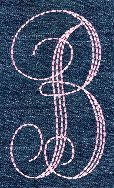 Для толстых букв вам понадобится стежок с большей плотностью. Цепной стежок является правильным выбором для этого. Он довольно быстро сшивается и создает аккуратную и жирную линию. Если вы прострочите его рядами или по кругу, вы даже можете заполнить буквы тамбурным швом.