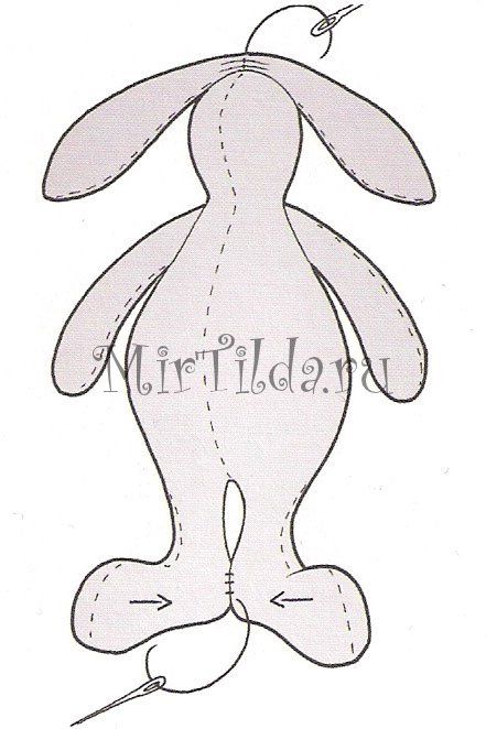 Мелом намечаем место пришива рук или что там у зайцев бывает, лапы? Пришиваем потайным швом.