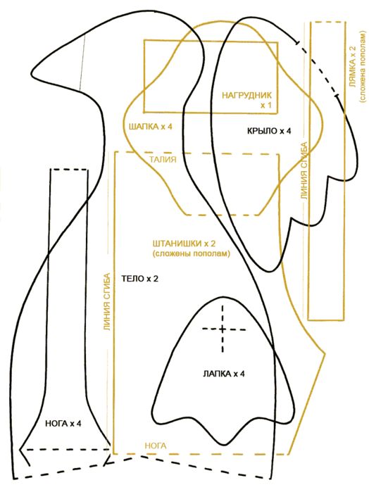 - Когда все изделия сшиты, нужно смоделировать макет будущей игрушки, разложив заготовки на ровной поверхности.
