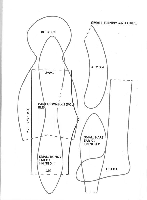 У него костюм, состоящий из штанов, рубашки и шапки, а у нее штаны, сарафан и такой же головной убор, как у зайца. Кроме того, на картинке в начале статьи есть выкройка комбинезона кролика тильда.