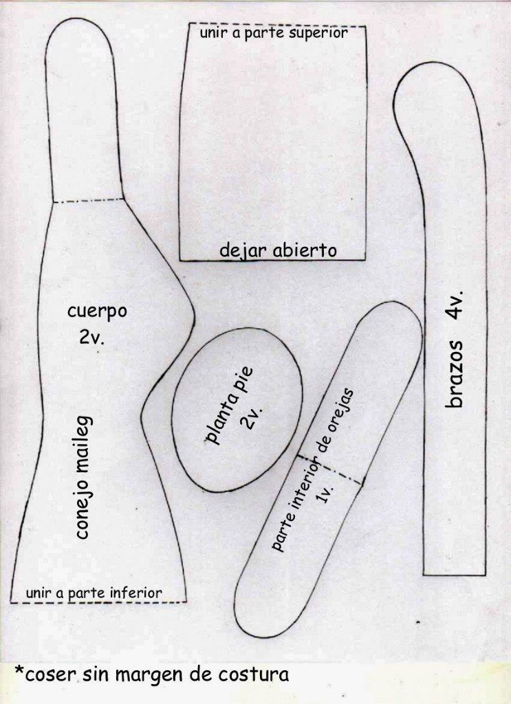 - Уши кролика длинные, поэтому выкройка для них тоже должна быть длинной. Пусть они будут такого же размера, как туловище с ногами.