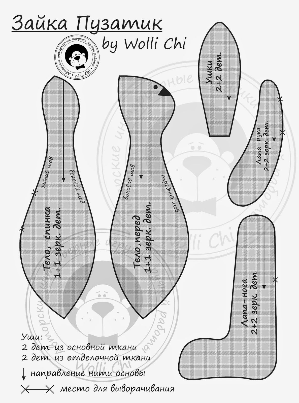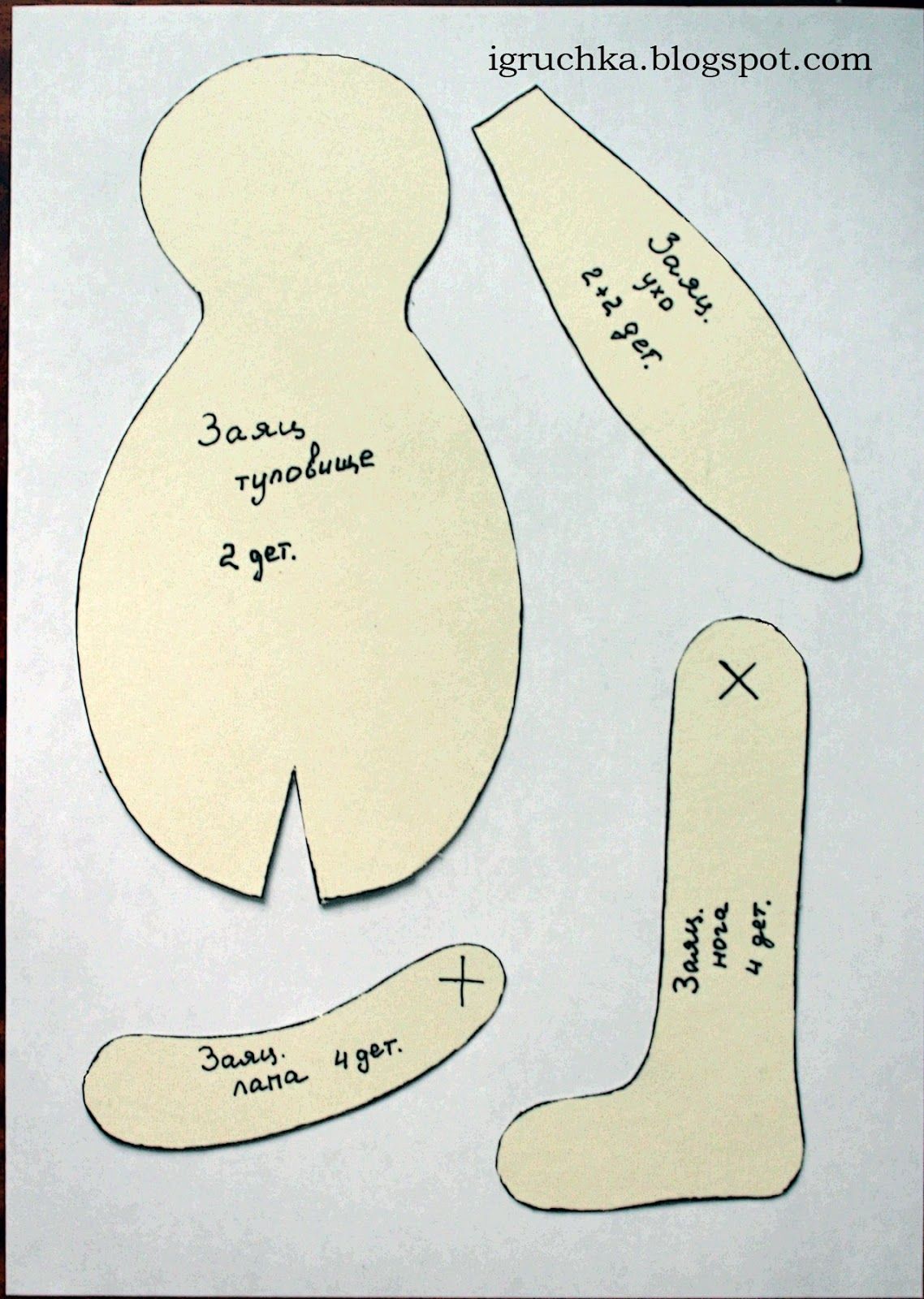 Шить зайчишку не так-то просто. Поэтому для первой попытки не стоит выбирать слишком затейливую выкройку. Начнем с самого обычного: