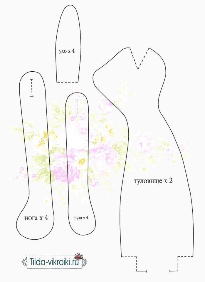 А обсуждаемый нами вариант предполагает, что для каждой части тела игрушки строится отдельная выкройка. Кукла заяц тильда в классической интерпретации состоит из следующих деталей: