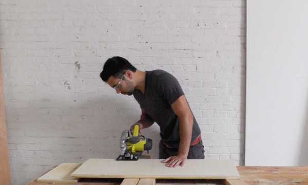 - Чертеж каждой детали необходимо накладывать на исходный материал и обводить по контуру. Чтобы правильно распилить лист ДСП, контур изделия лучше поцарапать гвоздем. Таким образом получится избежать сколов при распиливании. Работать можно только с внешней стороны детали.