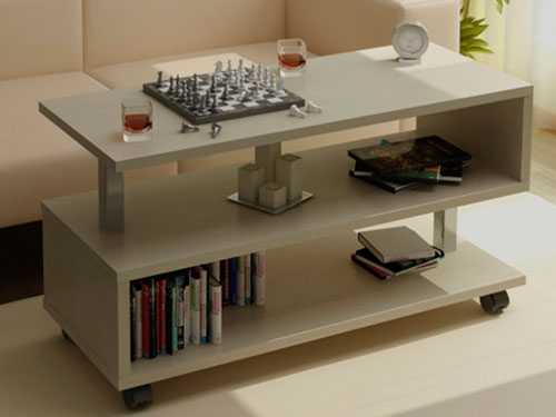 Сделанный своими руками журнальный столик из ДСП, фото которого представлено в статье, должен получиться легким, чтобы его можно было легко перемещать. Такой мобильный предмет мебели можно сделать на колесиках, чтобы перемещать его было удобно и легко.