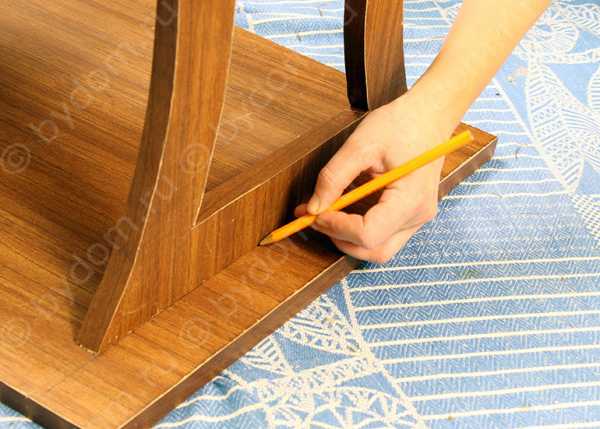 - На нижней выкройке стола следует примерить ножки, и отметить места для них карандашом.