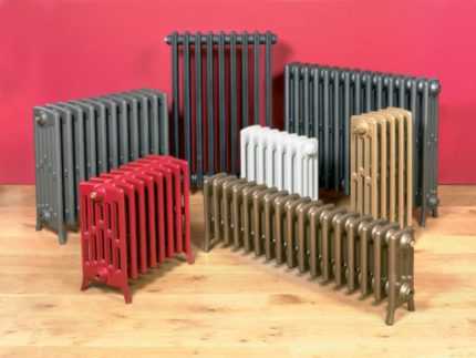 Изготавливаются из нескольких одинаковых секций, вылитых из чугуна и герметично соединенных друг с другом. При установке подобного отопителя необходимо определиться с количеством секций, которое зависит от площади помещения, количества окон, высоты этажа, углового размещения квартиры.