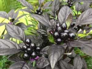 Узнать перец этого сорта можно по плодам оригинального фиолетового цвета, которые к моменту биологической спелости становятся сначала оранжевыми, а потом ярко красными. Плодоносит перец практически круглый год, поэтому на кустике всегда есть плоды разного цвета.