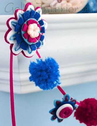 - Для комнаты вашего малыша понадобятся как можно более яркие, безопасные, мягкие и нетоксичные украшения, которые трудно порвать или помять. К тому же, необходимо, чтобы их было легко постирать и при необходимости заменить новыми. Непростая задачка! Проще решить ее самостоятельно, нежели идти в магазин. Идеальным вариантом станут бабочки, сделанные своими руками или цветы, из плотной, приятной на ощупь ткани. Традиционно, родители выбирают для этого фетр. Вы с легкостью можете сшить или вырезать из него все, что угодно, и быть спокойными за здоровье и безопасность малыша!