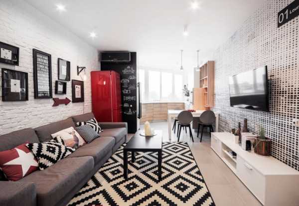 Возьмите оформление поверхностей в светлых тонах из скандинавского стиля, добавьте немного кирпичной кладки из лофта, подберите классические светильники и люстры, и подчеркните общий колорит пестрой гаммой цветов поп-арта. Вуаля! Современное и удобное пространство квартиры-студии заиграло новыми красками!