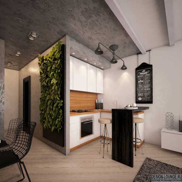 - разделение зон при помощи мебели: спинка дивана и барная стойка заменят стену между комнатами;