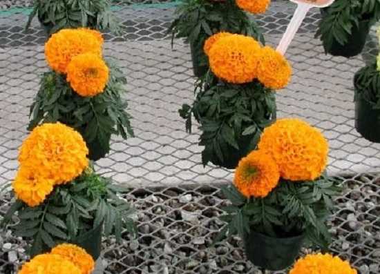 Как правило это бархатцы с высокими кустами до 90 см, но среди прямостоящих есть и низкорослые, такие как сорт «Антигуа».