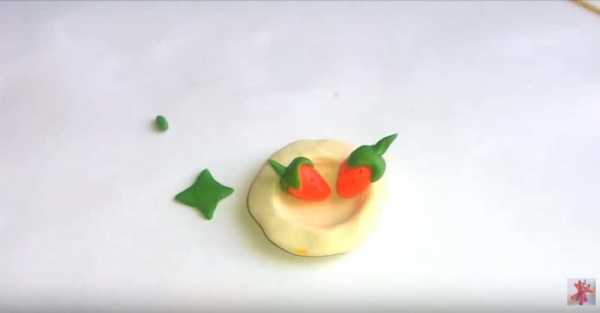 - Сделать из зеленого цвета маленькие палочки — листики и веточки для малины.