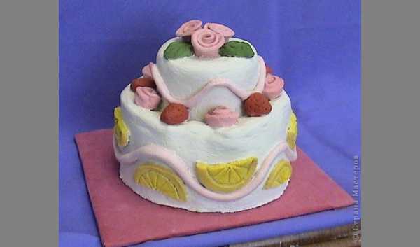 Продолжая тему лакомств, предлагаем ознакомиться с фотоуроком, как из пластилина слепить торт. Принцип работы практически ничем не отличается от лепки других блюд, и его будет легко освоить даже детям 3-4 лет. А готовый тортик уж точно придется по вкусу куклам и плюшевым животным.