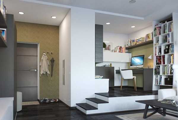 Подобная возвышенность может послужить дополнительным местом для хранения вещей, благодаря выдвижным ящикам. Для очень высоких подиумов рекомендуется соорудить ступеньки. Плюс подиумов в том, что они не занимают лишнее место и помогают выделить какую-то зону.
