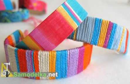 Изготовление красивых и простых браслетов очень напоминает статью «Украсить интерьер с помощью доски и мулине«. Но в нашем случае основой для обмотки послужит… палочка от мороженного. Вот так вот, простейшие компоненты (мулине и палочка от мороженного), и красивый браслет практически у вас в кармане.