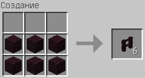 | Чтобы создать забор из адского кирпича, понадобится 2 адских кирпича и 4 блока адских кирпичей. | |||||