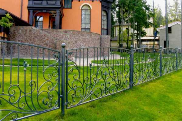 Металлические конструкции оград надежные защитники. Эти капитальные сооружения пользуются популярностью. Пролеты в них могут представлять собой кованые решетчатые детали или являться листами металлопрофиля. Крепятся пролеты на металлический каркас или обрамляются фундаментальной каменной кладкой. Более красивым и практичным забор получится в последнем случае.