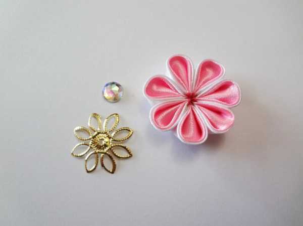 Для создания одной заколочки с цветочком канзаши необходимо подготовить: