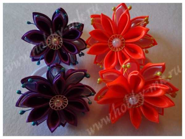 Канзаши. Резинки для волос с цветами. Мастер-класс с пошаговыми фото