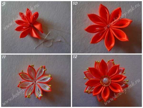- Моделирование цветов для резинок из атласных лент