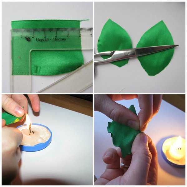 Для фиксации краев потребуется опаливание пламенем зажигалки или свечи. Будьте аккуратны и соблюдайте меры безопасности! Подробнее приема техники канзаши смотрите в другой публикации на нашем сайте.