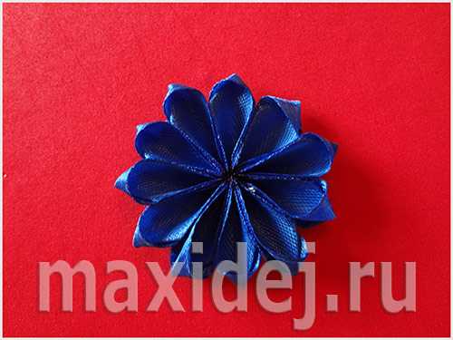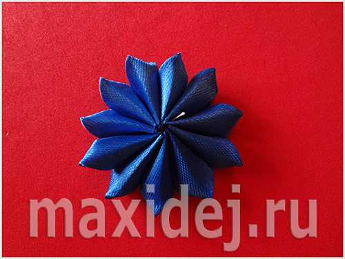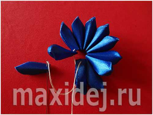 Сборка цветка канзаши из острых лепестков
