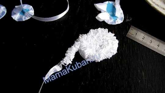 - пятисантиметровая атласная лента белого цвета – 40 см;